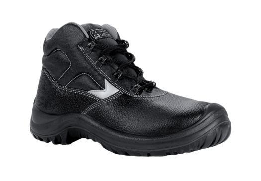 Chaussure de sécurité mi-haute Basic S3. Semelle injectée en PU double densité, tige en cuir avec insert réflexe latéral, semelle intercalaire anti-perforation et embout de protection en acier.