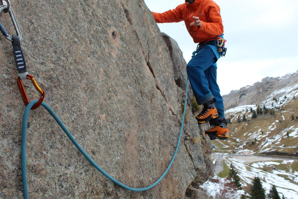Chaussures d’alpinisme semi-cramponnable, imperméables, respirantes et avec semelle Vibram. Les chaussures techniques de la gamme Alpine sont conçues pour l’alpinisme, les via ferrata et les ascensions glaciaires grâce à l’insert semi-automatique pour crampons. La tige est réalisée en cuir suédé Perwanger et dotée d’une protection en caoutchouc qui la rend plus résistante aux chocs, semelle Vibram. Le laçage différencié entre la partie supérieure et inférieure offre un ajustement parfait pour un confort et un chaussant optimal. Les demi-pointures sont également disponibles.