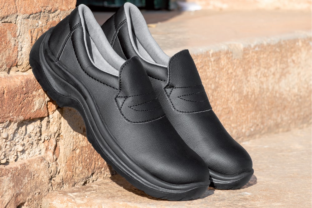 Scarpe mocassini antinfortunistiche da cucina comode, con tomaia in microfibra, suola antistatica iniettata in poliuretano monodensità e puntale in acciaio. Mocassini da cucina disponibili in bianco e nero. Garantiscono piedi sempre riposati anche dopo un’intera giornata di lavoro in cucina.